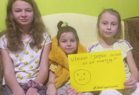 Uczniowie mogli wziąć udział w naszej szkolnej akcji #dzienzyczliwosci . Zadanie polegało na tym, żeby przesłać zdjęcie z jakimś pozytywnym hasłem, pozdrowieniami napisanymi na kartce lub w żółtym stroju i z pięknym uśmiechem, którym chcielibyśmy się podzielić się z innymi. Z przesłanych zdjęć powstała szkolna galeria życzliwości, którą podzieliliśmy się na naszej szkolnej stronie i profilu fb.