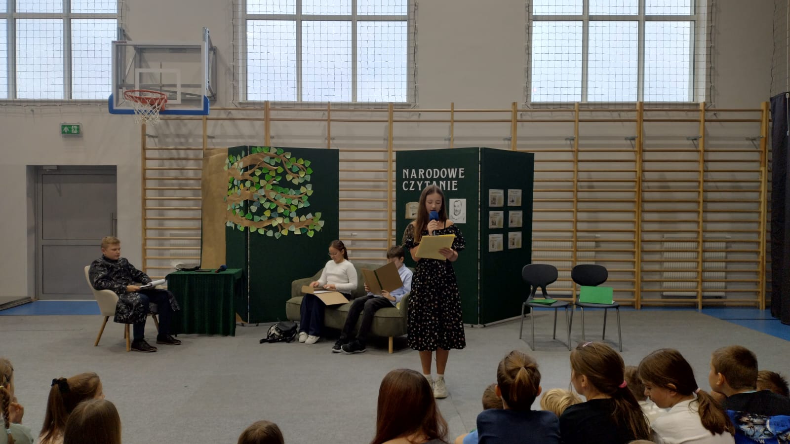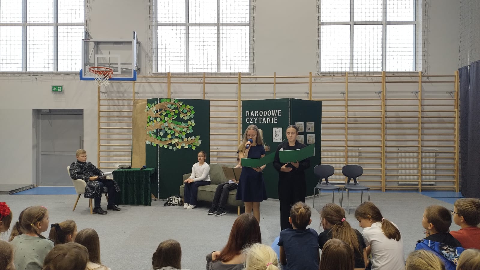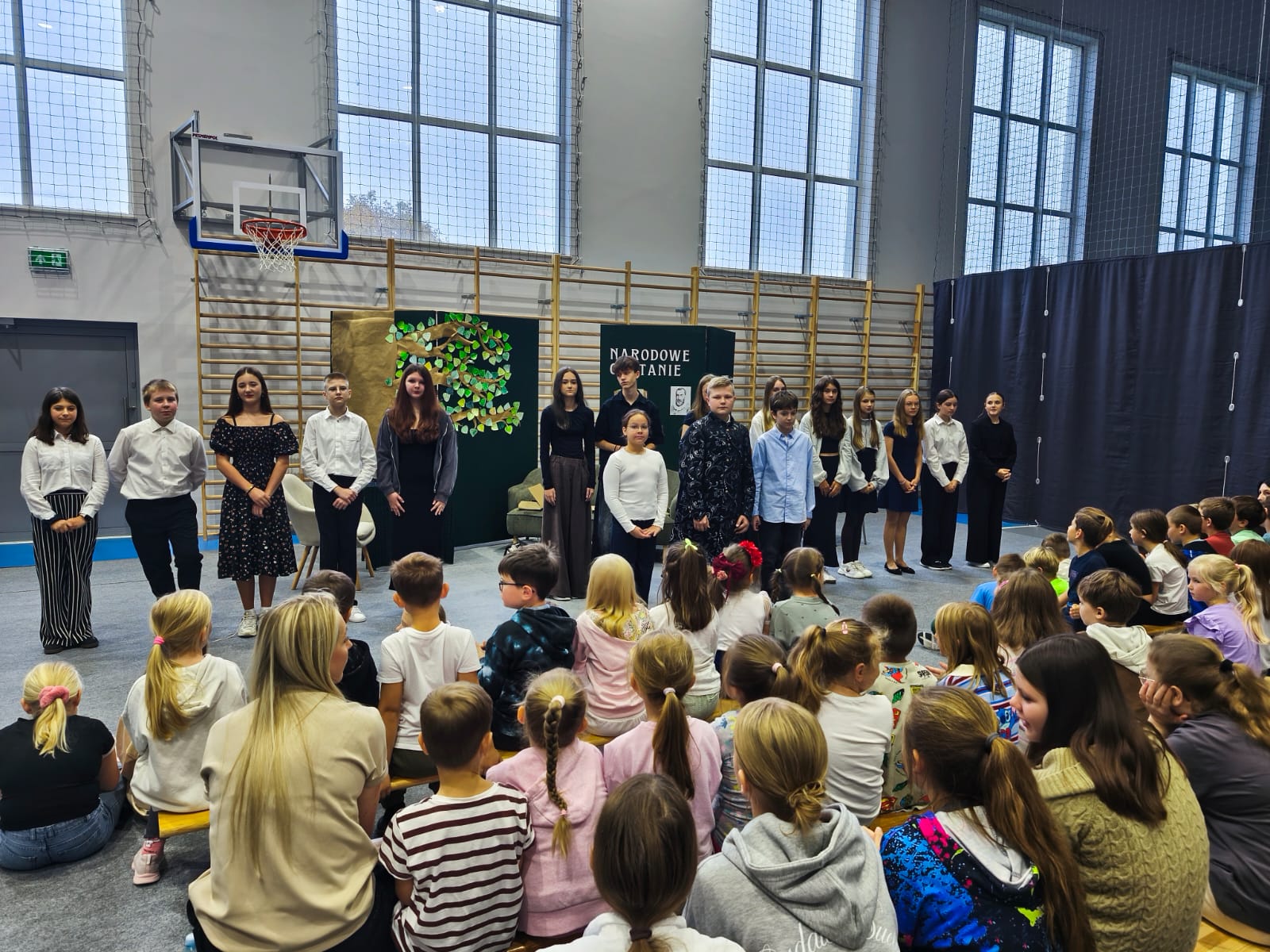 10 października w naszej szkole odbyło się przedstawienie pt. „Panie Janie, mam pytanie”, nawiązujące do tematyki tegorocznego Narodowego Czytania. Przedstawiciele klas V, VII i VIII - przygotowani przez naszą polonistkę - w trakcie inscenizacji przenieśli się w czasy Jana Kochanowskiego, aby w trakcie spotkania z tym wszechstronnym twórcą przybliżyć społeczności uczniowskiej jego dzieła, również takie, których nie znajdą w podręcznikach. Uczniowie mogli się przekonać, że mimo archaicznego dla nich języka, który przełożony został w czasie przedstawienia także na współczesną polszczyznę, utwory Mistrza z Czarnolasu mają bardzo uniwersalny charakter i są aktualne do dzisiaj.