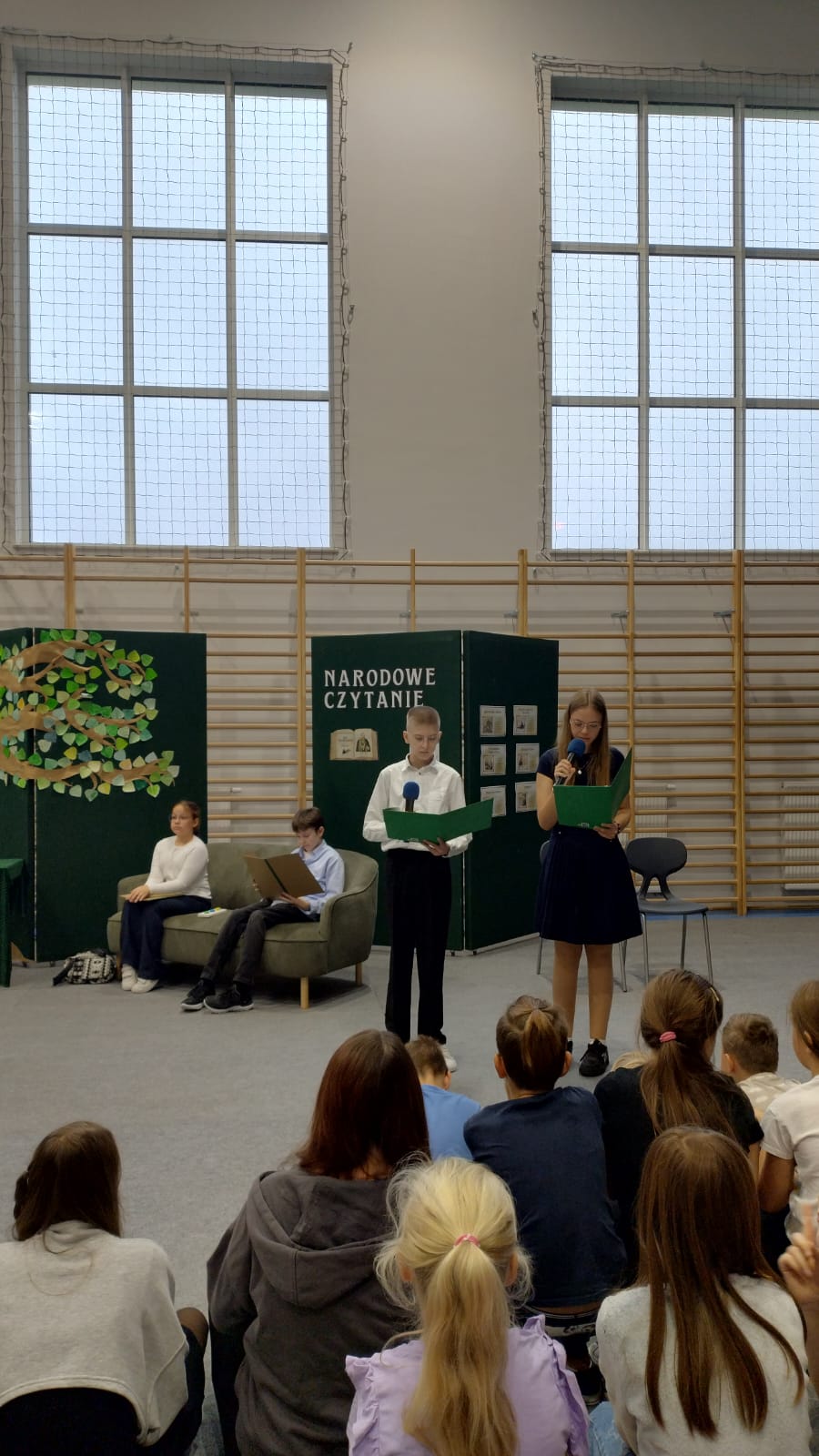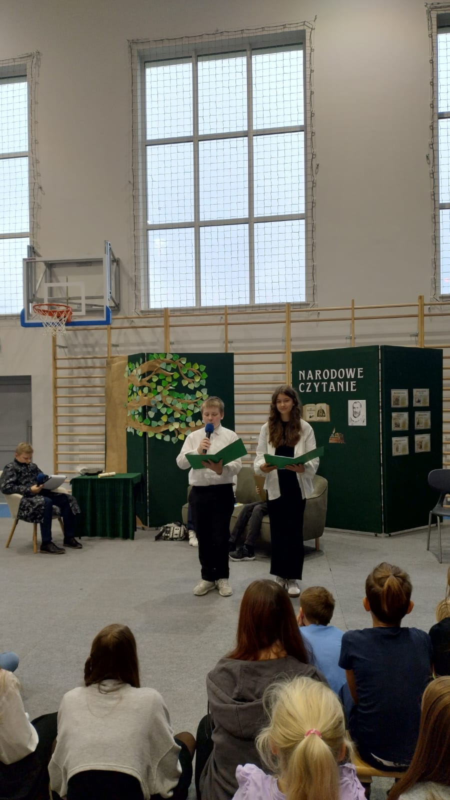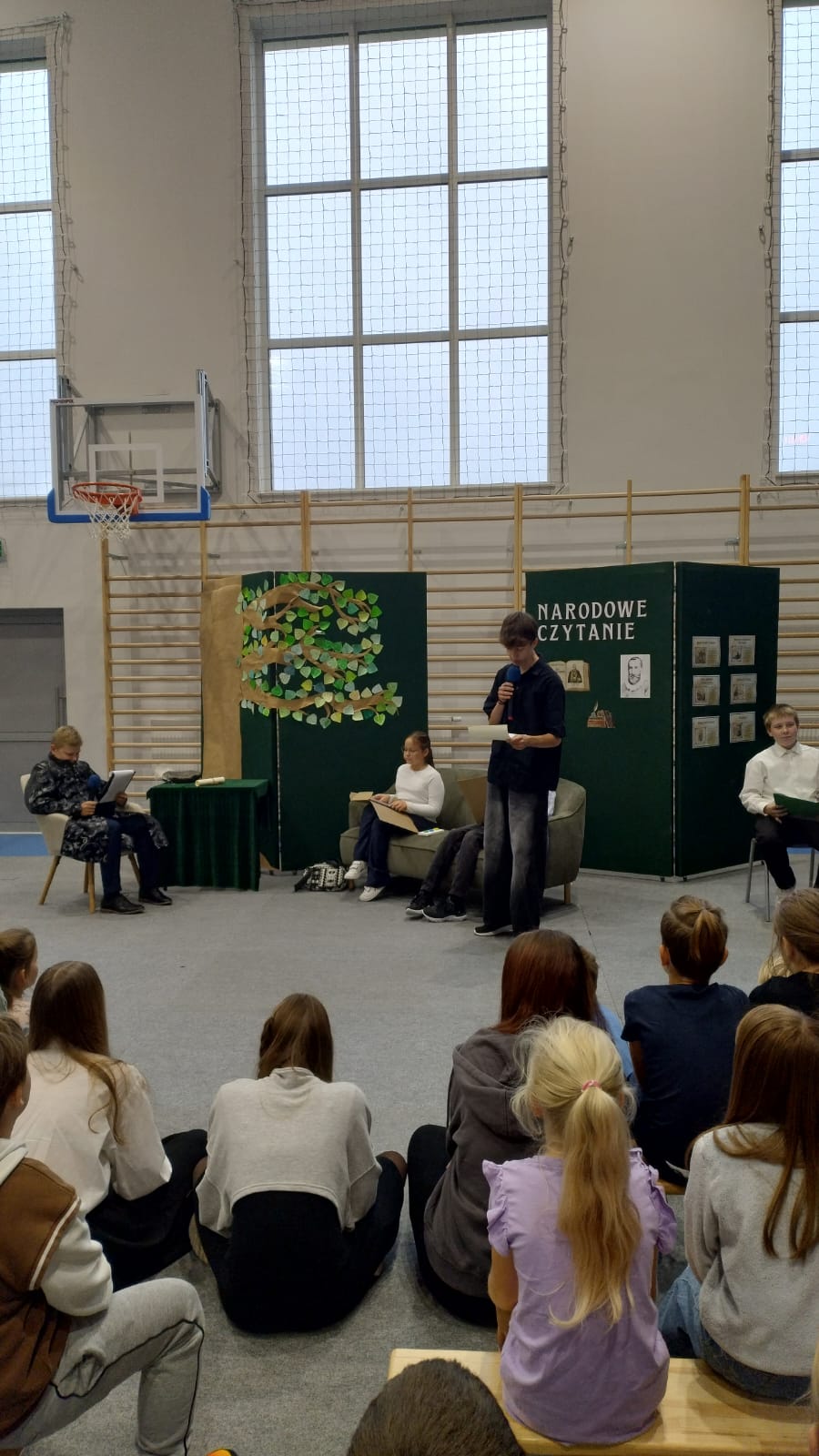 10 października w naszej szkole odbyło się przedstawienie pt. „Panie Janie, mam pytanie”, nawiązujące do tematyki tegorocznego Narodowego Czytania. Przedstawiciele klas V, VII i VIII - przygotowani przez naszą polonistkę - w trakcie inscenizacji przenieśli się w czasy Jana Kochanowskiego, aby w trakcie spotkania z tym wszechstronnym twórcą przybliżyć społeczności uczniowskiej jego dzieła, również takie, których nie znajdą w podręcznikach. Uczniowie mogli się przekonać, że mimo archaicznego dla nich języka, który przełożony został w czasie przedstawienia także na współczesną polszczyznę, utwory Mistrza z Czarnolasu mają bardzo uniwersalny charakter i są aktualne do dzisiaj.